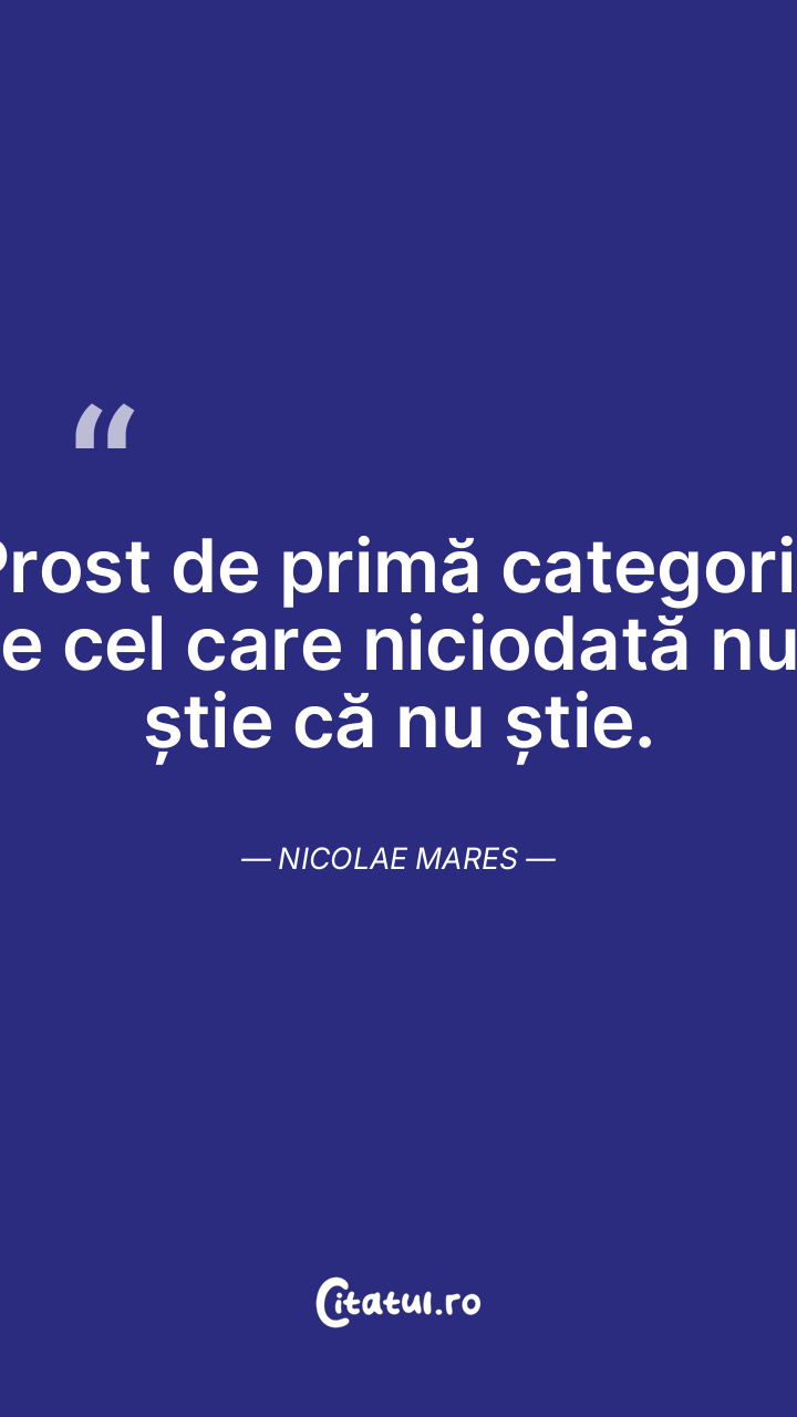 Pentru optimiști, prostia moare. Proștii cred însă că-i nemuritoare. Nicolae Mares