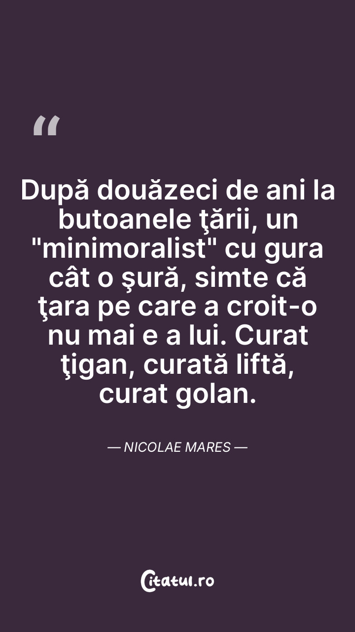 Să vrei să fi bogat, să ai șase case, asta într-o țară săracă, înseamnă să ofensezi bunul simț și-o nație întreagă. Nicolae Mares