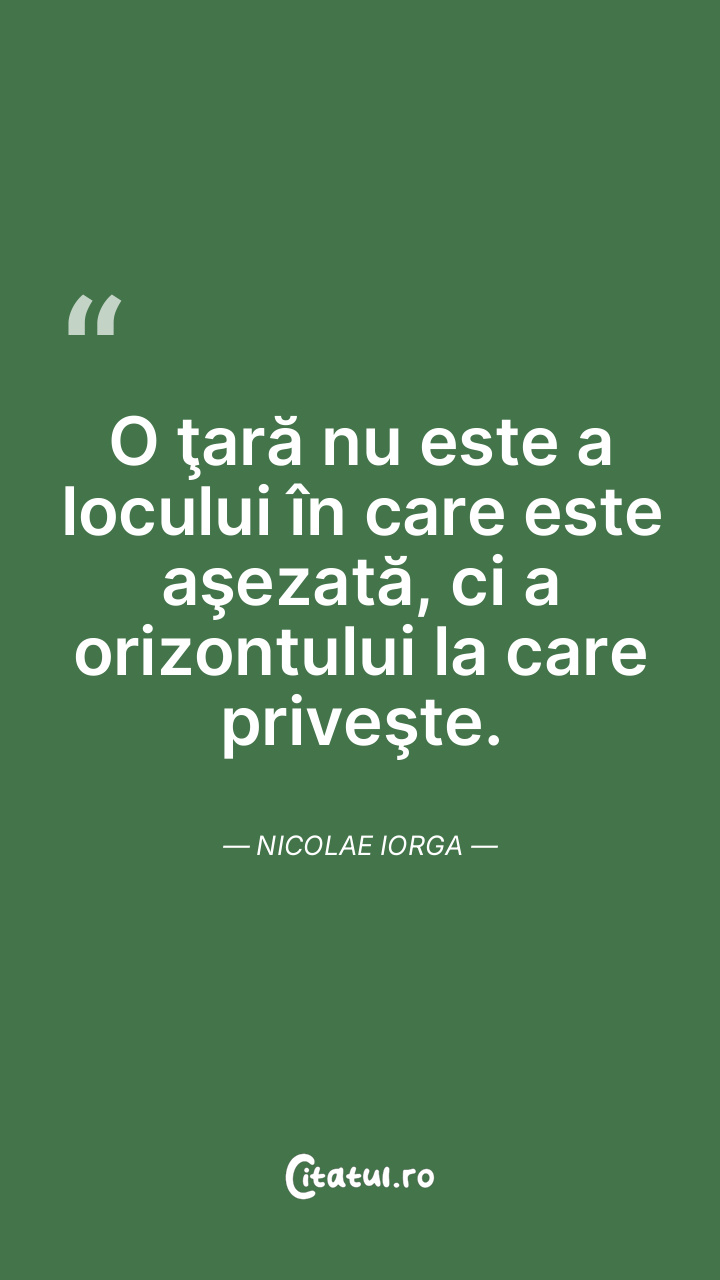 Ţara este rodul a zeci de generaţii şi aparţine altor zeci de generaţii care vor veni. Blândeţea caracteristică a poporului românesc dovedeşte că în trecut el a trăit economiceşte mulţămit, c-a avut ce-i trebuia. Mihai Eminescu