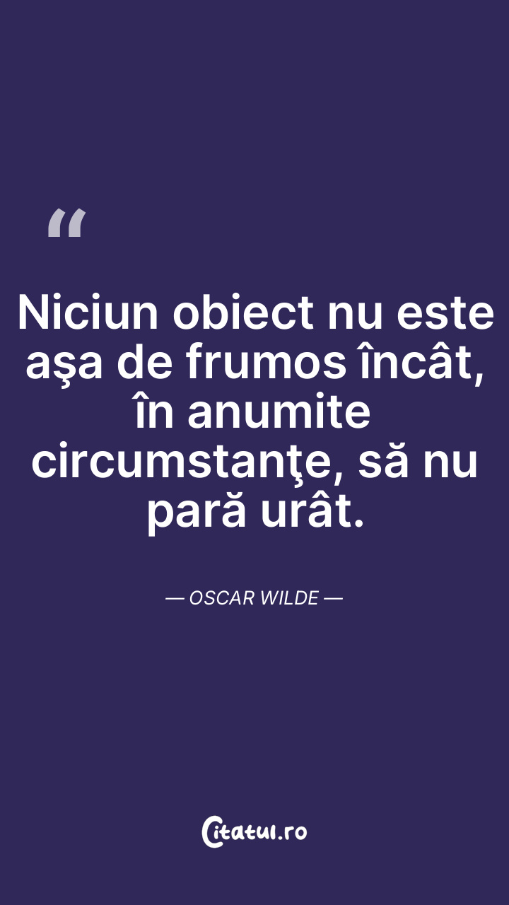 Frumuseţea e simplă. Ea nu are nevoie de explicaţii. Oscar Wilde