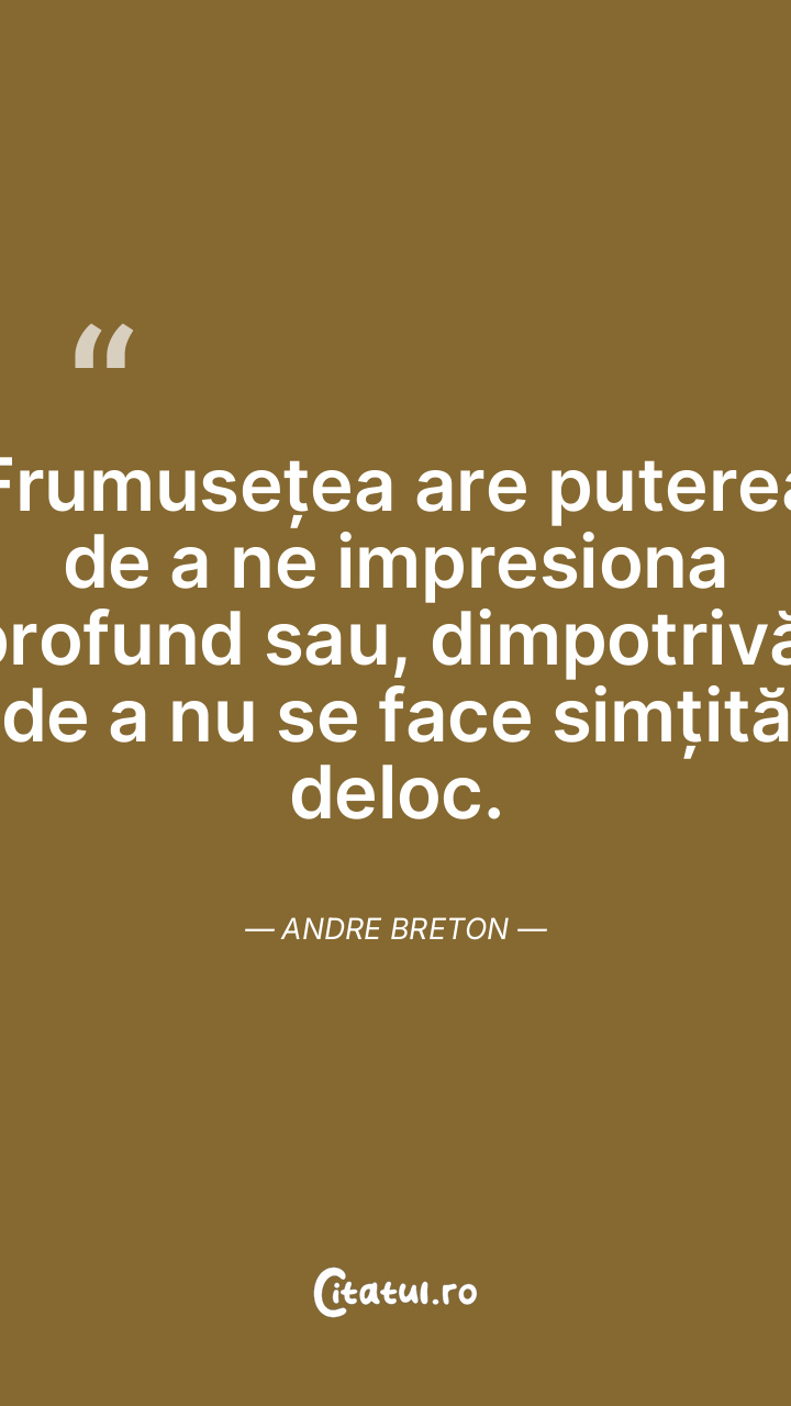 Frumuseţea nu duce la revoluţii, dar revoluţiile au nevoie de Frumuseţe cumva. Albert Camus