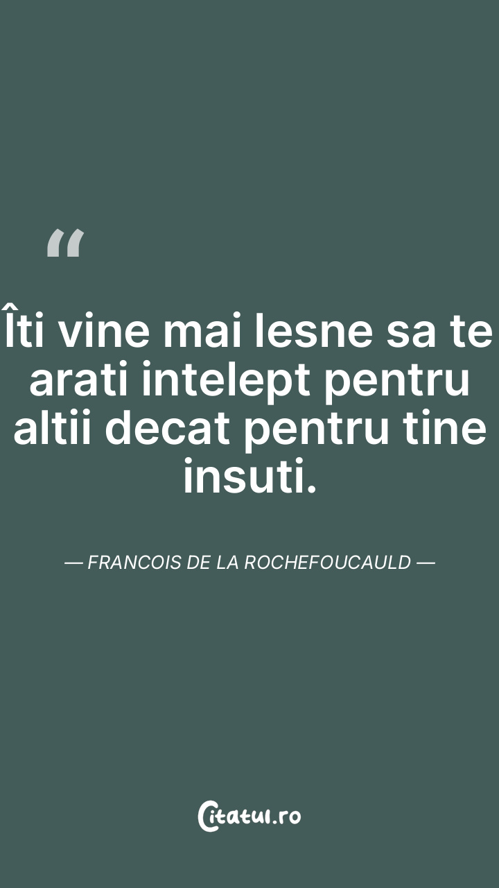 E mai usor sa fim intelepti pentru altii decat pentru noi. Francois de la Rochefoucauld