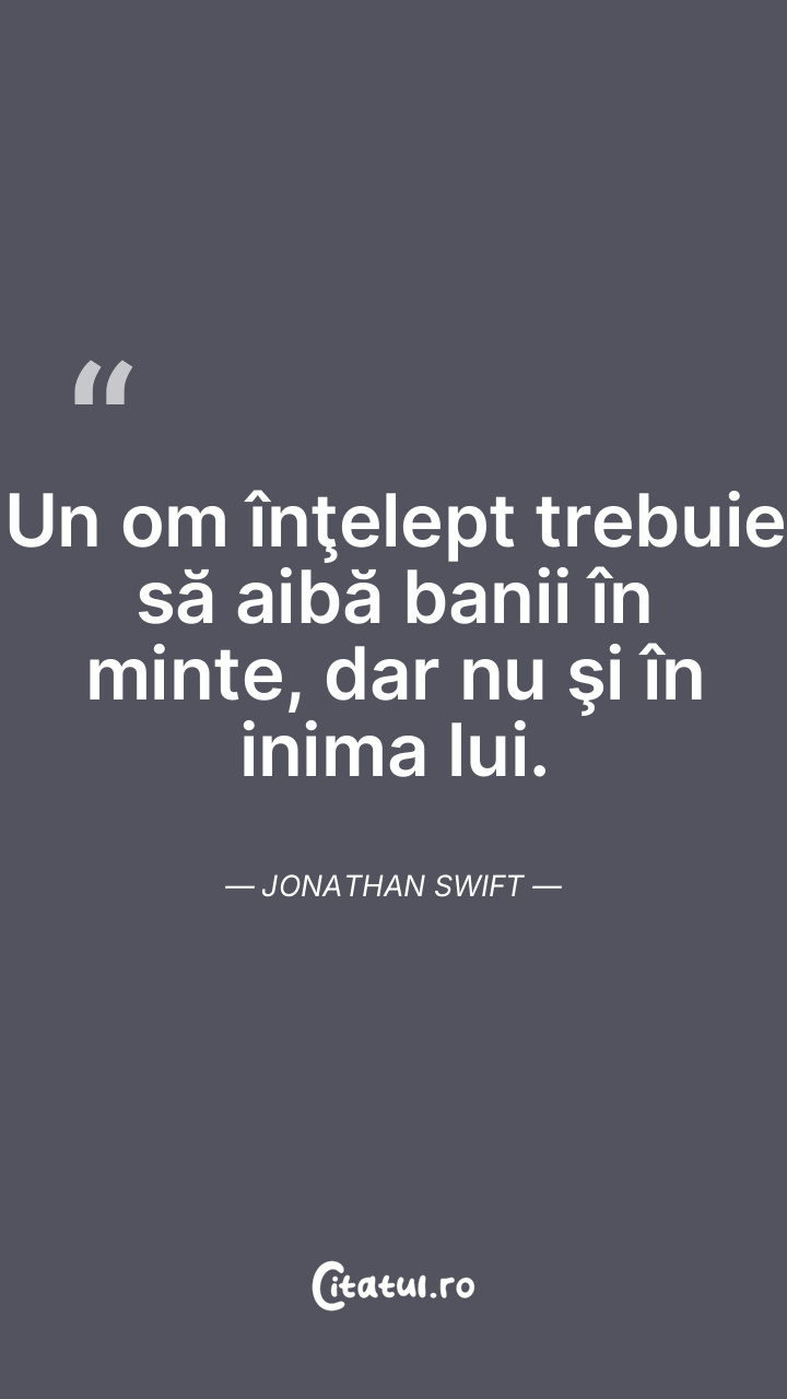 Un om înţelept trebuie să aibă banii în minte şi nu în inima sa. Jonathan Swift