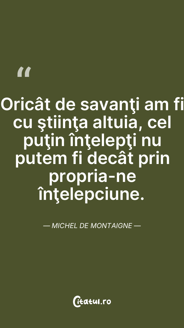 Dacă ar fi fost după mine şi dacă Înţelepciunea m-ar fi vrut de soţ, aş fi fugit chiar şi de ea. Michel de Montaigne