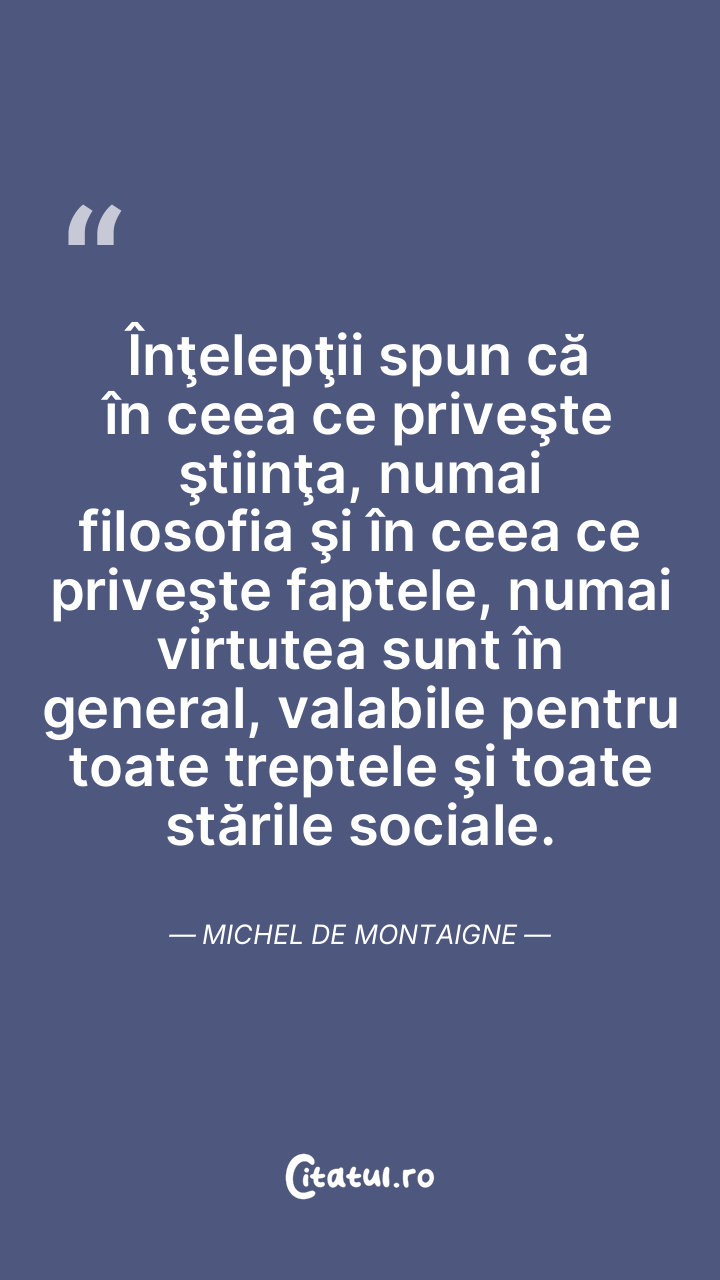 Nu este chip înţelept să ne judecăm pur şi simplu după faptele exterioare; trebuie să sondăm în adânc şi să vedem care este resortul ce ne mişcă. Michel de Montaigne