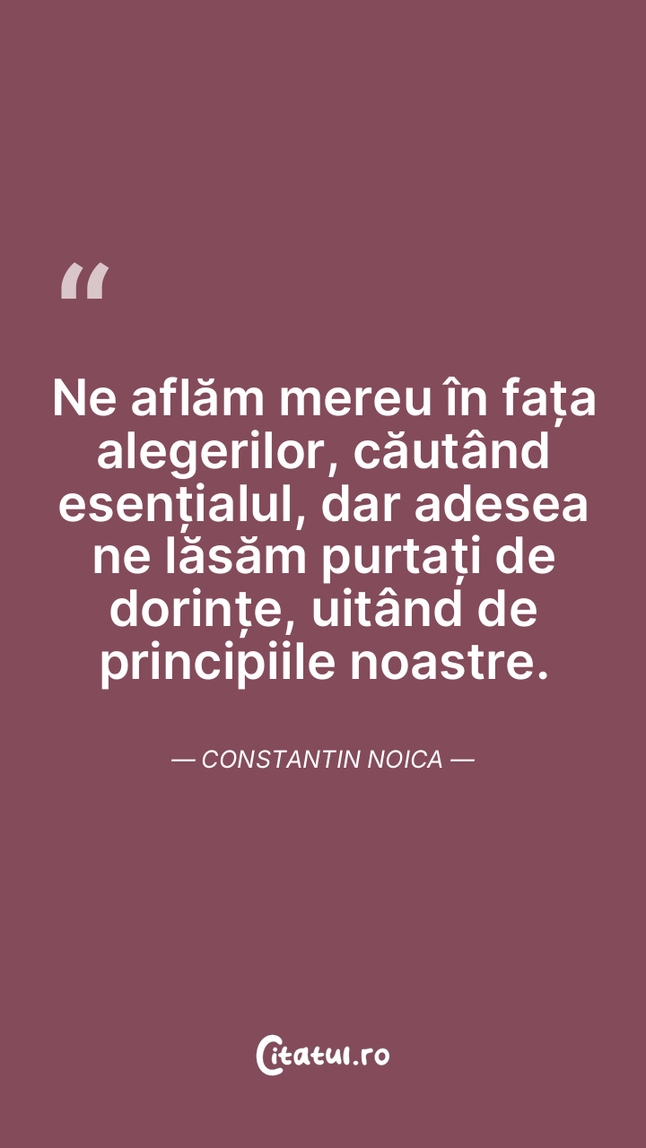 La finalul vieții, fiecare persoană ar trebui să reflecteze asupra ideilor care le-au definit existența și să-și examineze gândurile fundamentale. Constantin Noica