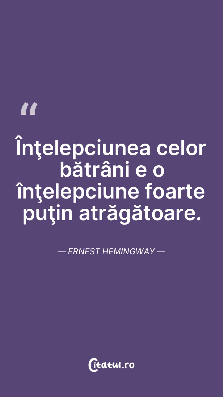 Nu există înţelepciunea bătrânilor. Când îmbătrâneşti, nu devii mai înţelept, ci mai atent. Ernest Hemingway