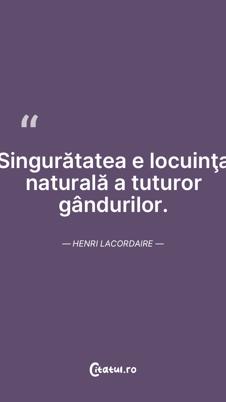 Marea problemă a existenţei noastre vine din faptul că suntem pentru totdeauna singuri şi toate eforturile, toate actele noastre nu ilustrează decât tendinţa de a fugi de această singurătate. Guy de Maupassant