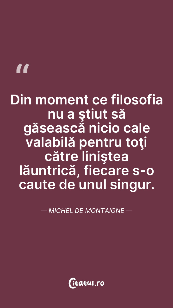 Pentru filosofie, toate ceasurile vor fi ca unul singur, orice loc va fi pentru ea, loc de învăţătură. Michel de Montaigne