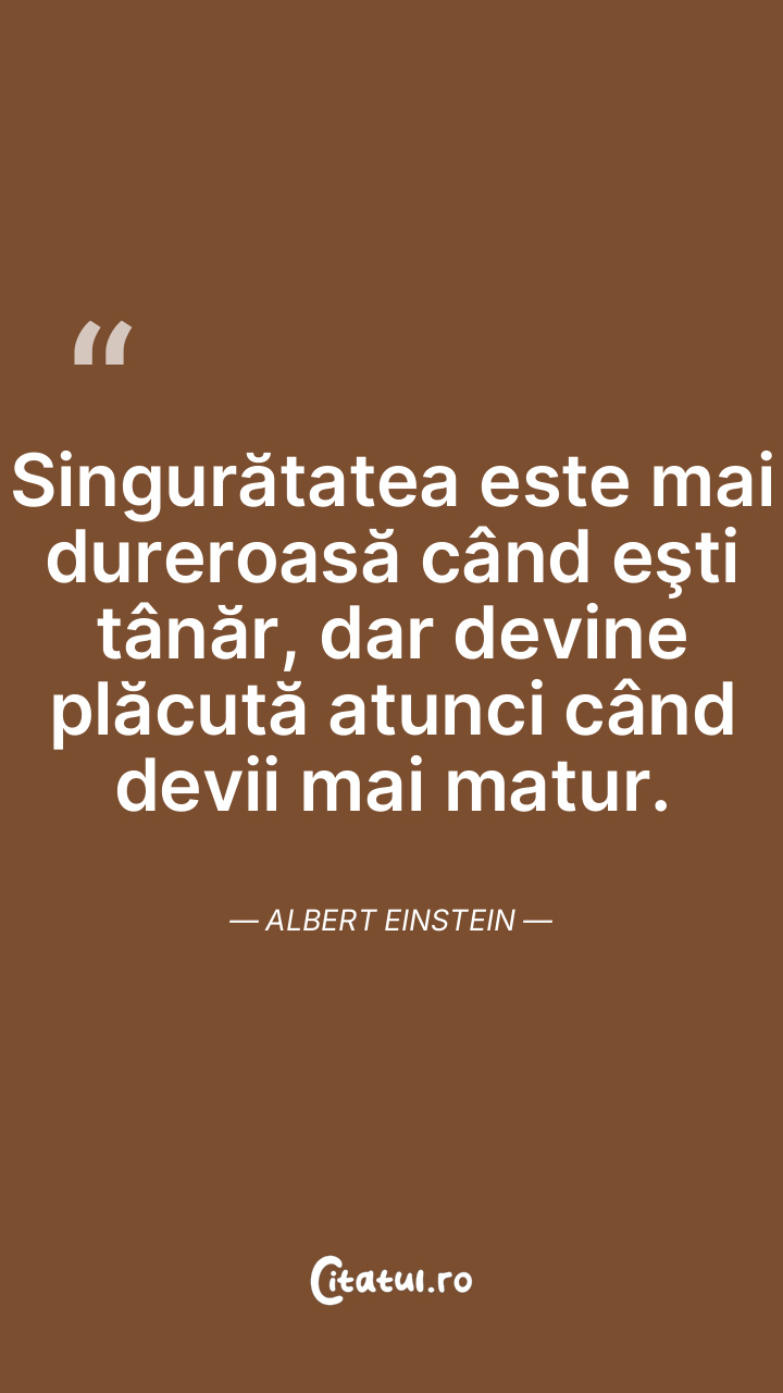 Singurătatea, dureroasă în tinerețe, devine o binecuvântare în etapa maturității. Albert Einstein
