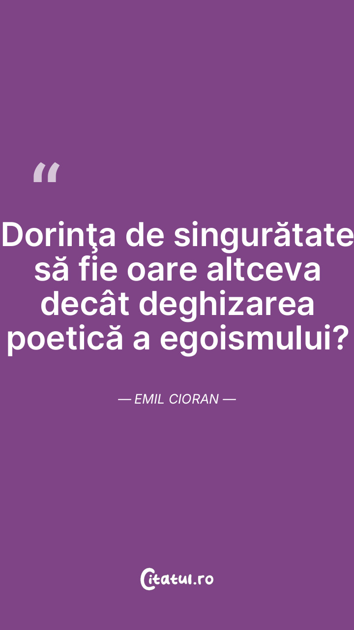 Am asemenea nevoie de singurătate, că e destul să mă gândesc la un chip omenesc ca să-mi vină să urlu. Emil Cioran