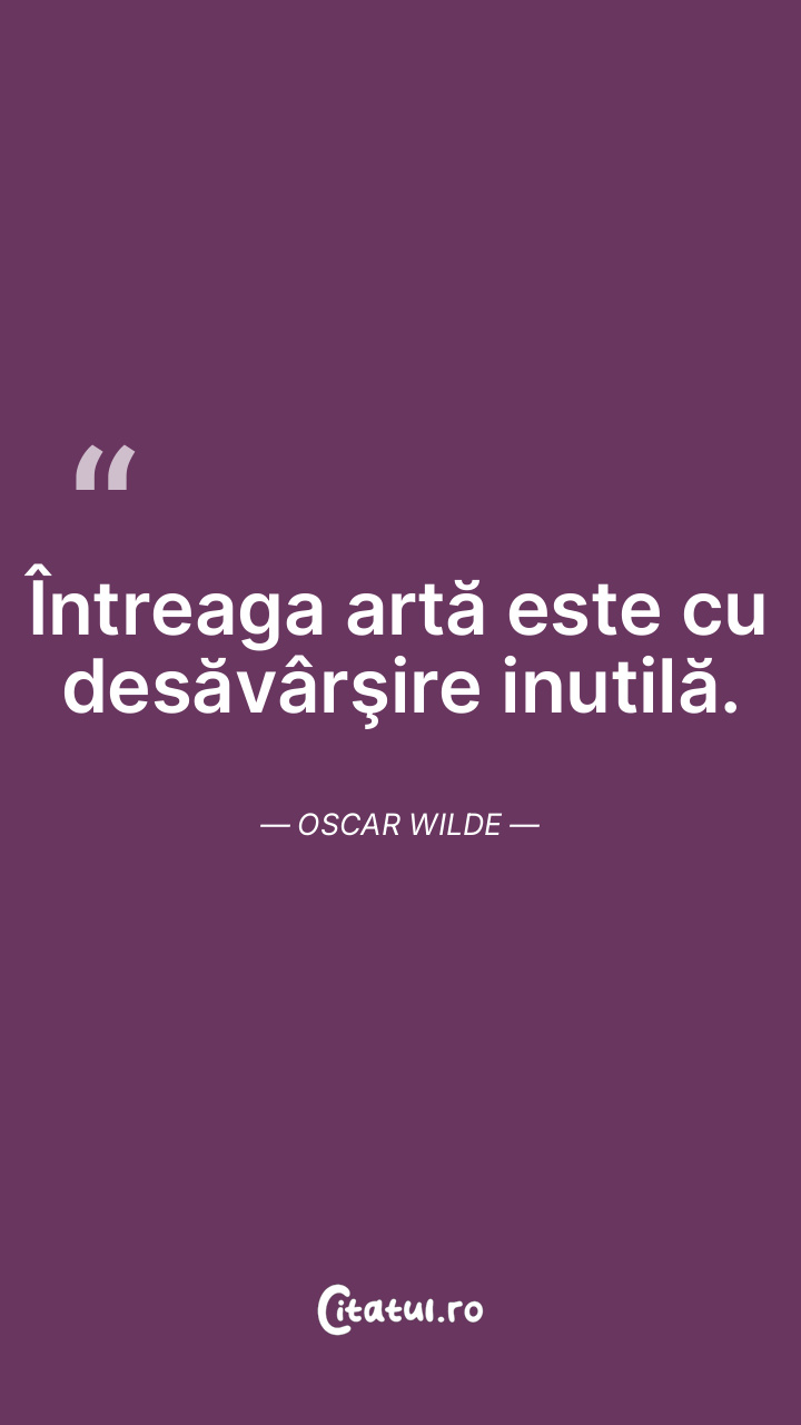 Arta e cu totul nefolositoare. Oscar Wilde ...