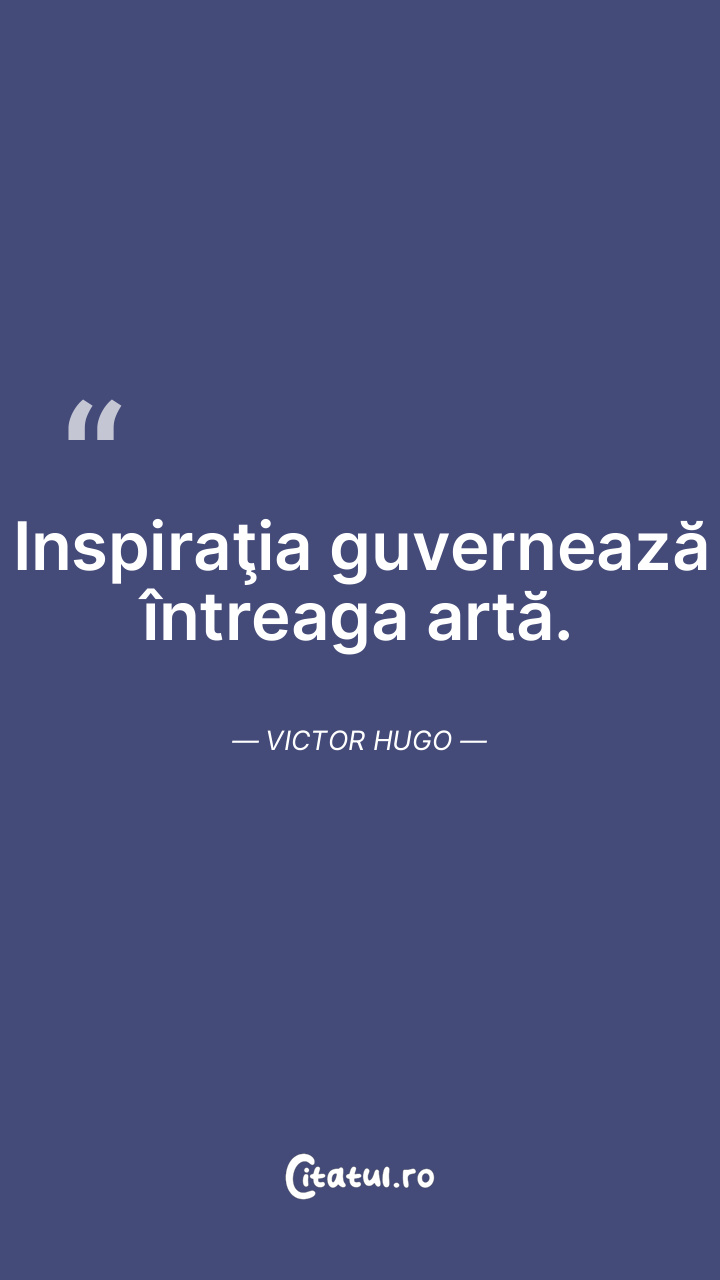 Arta nu se potriveşte cu mediocritatea: ea dă aripi, nu cârje. Victor Hugo