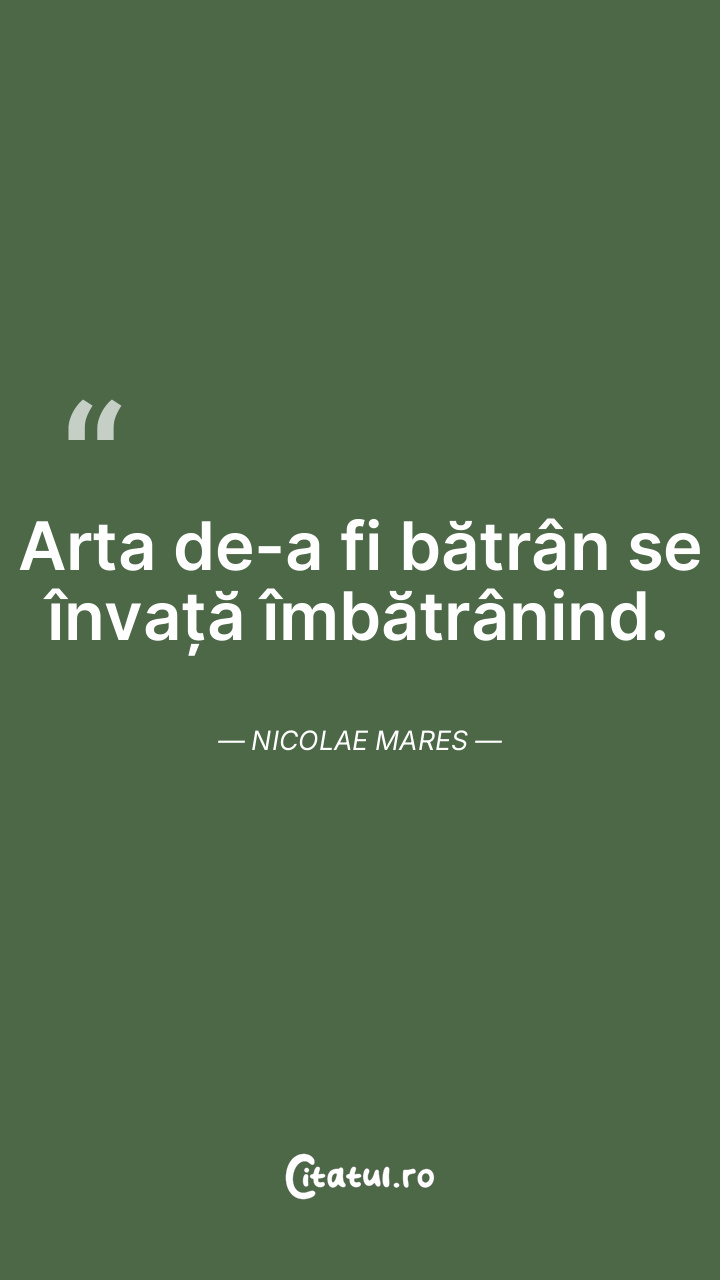Să știi să îți trăiești viața toată este o adevărată artă. Nicolae Mares