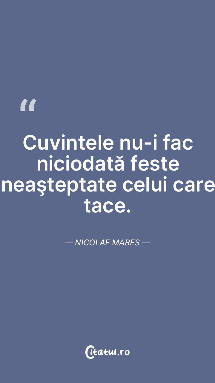 Dacă nu ți s-a dat cuvântul, n-ai cum să-l pierzi. Nicolae Mares