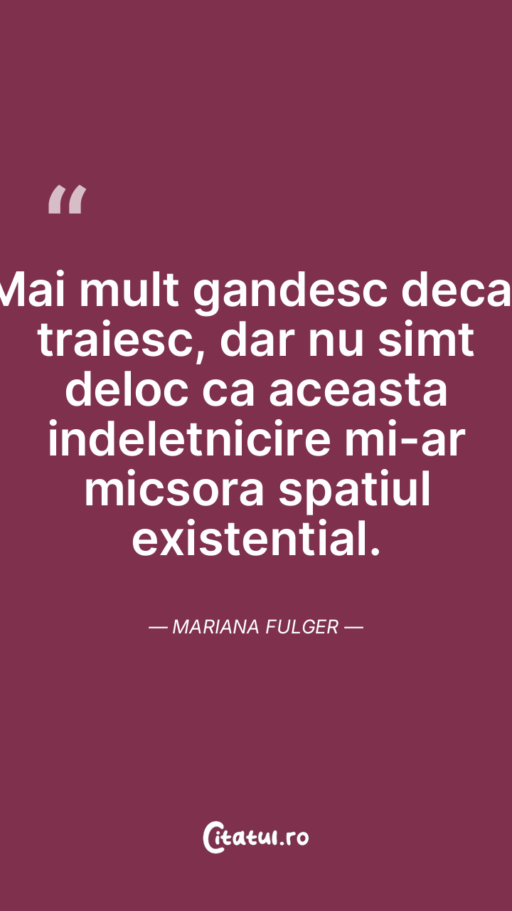 Suntem aripile gandurilor noastre. Mariana Fulger