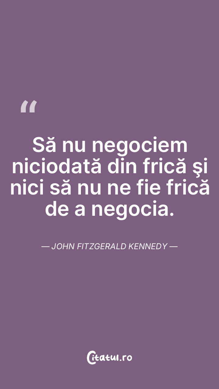 Să nu negociem cu frică. Dar să nu ne fie niciodata frică să negociem. John Fitzgerald Kennedy