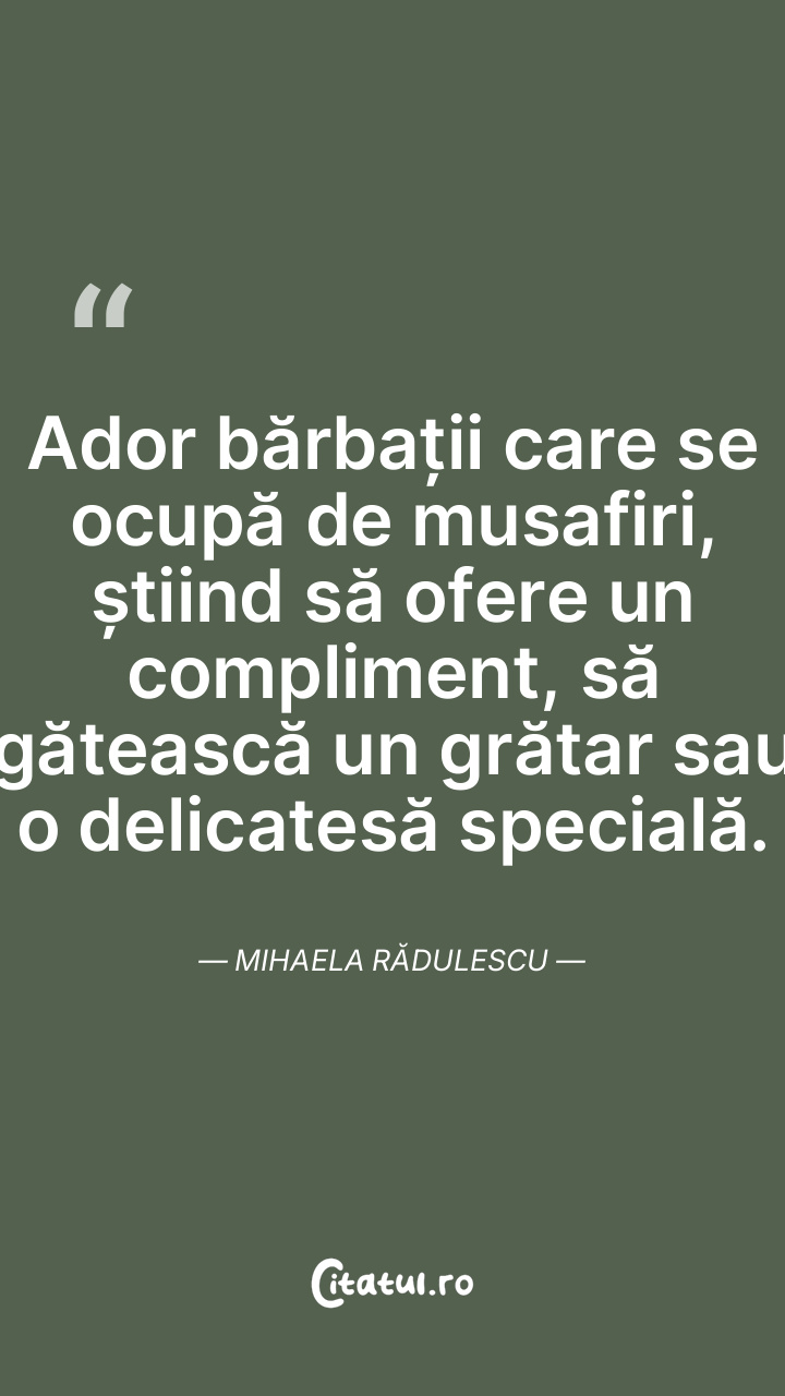 Nu apreciez femeile care sunt gelos suspicioase când discut cu altele, dar nici pe cele care flirtează cu toți pentru a atrage atenția. Mihaela Rădulescu