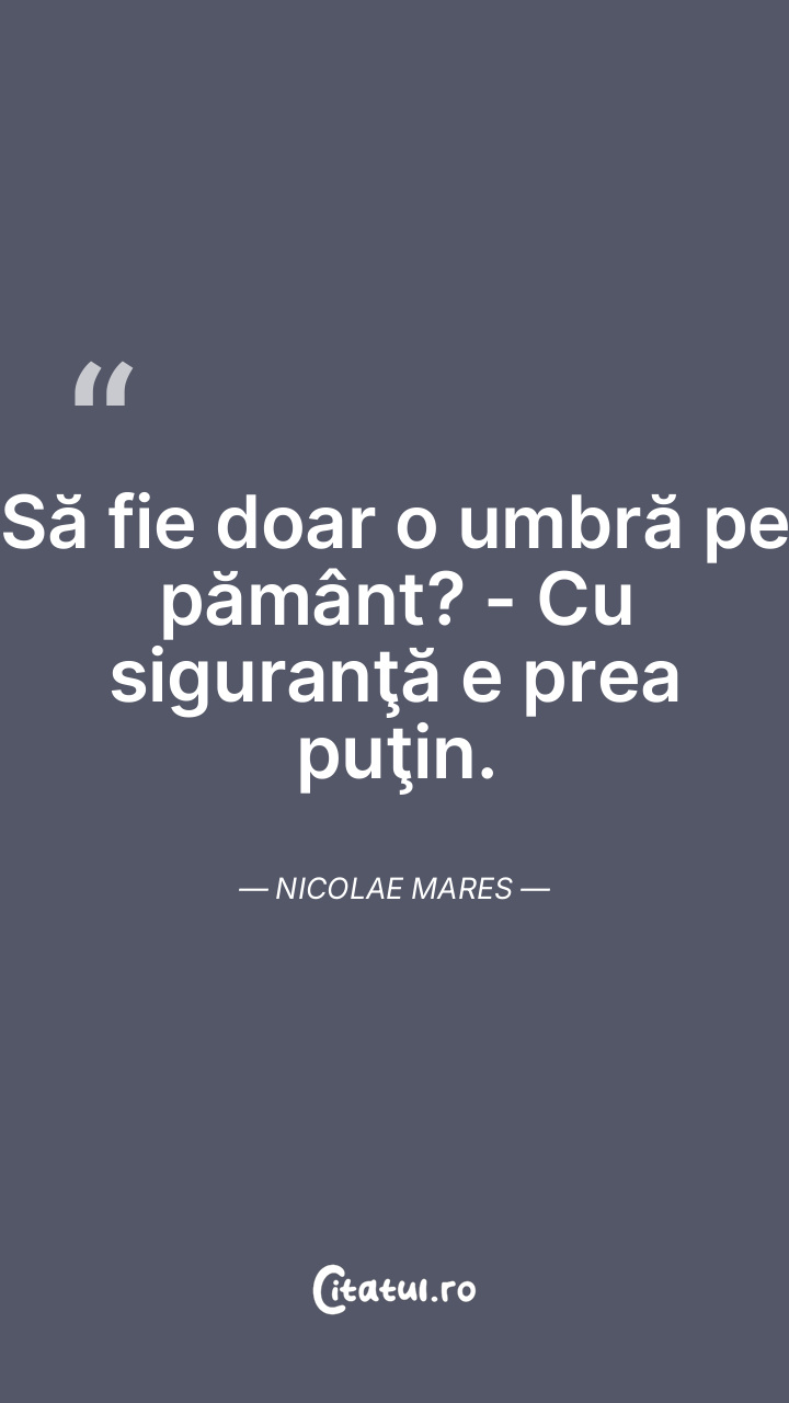 Eu cred că pământul e plat asemeni unei scânduri groase... că soarele nu răsare mereu în acelaşi loc şi nici nu răsare acelaşi soare, ci cu totul altul după noroc mai mic sau mai mare. Nichita Stanescu