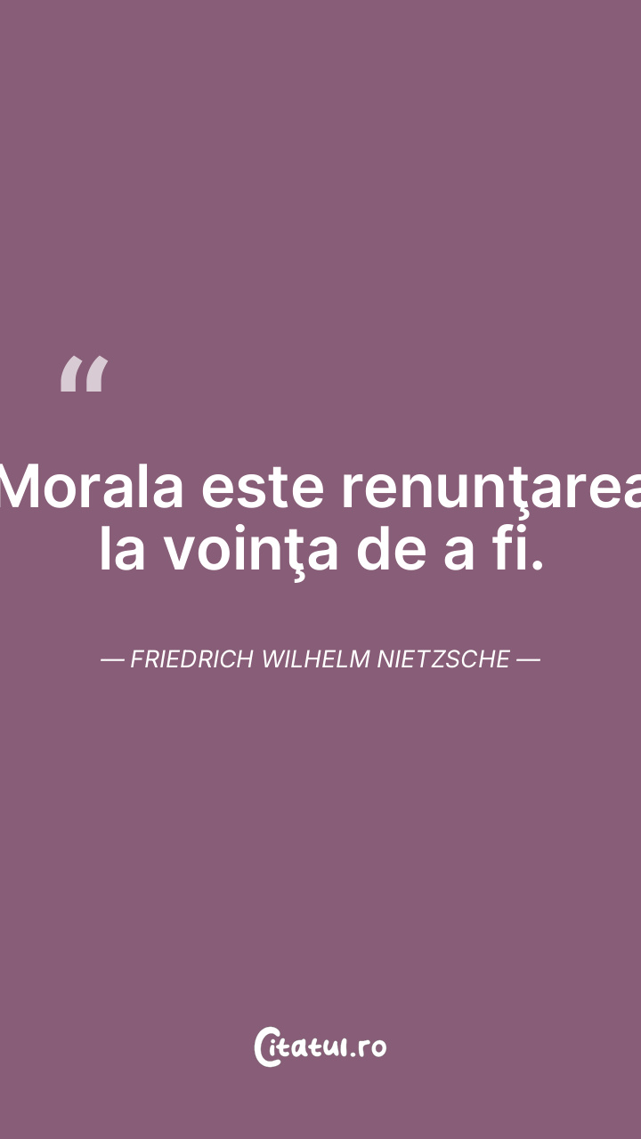 Iată antinomia: În măsura în care credem în morală, condamnăm existenţa. Friedrich Wilhelm Nietzsche
