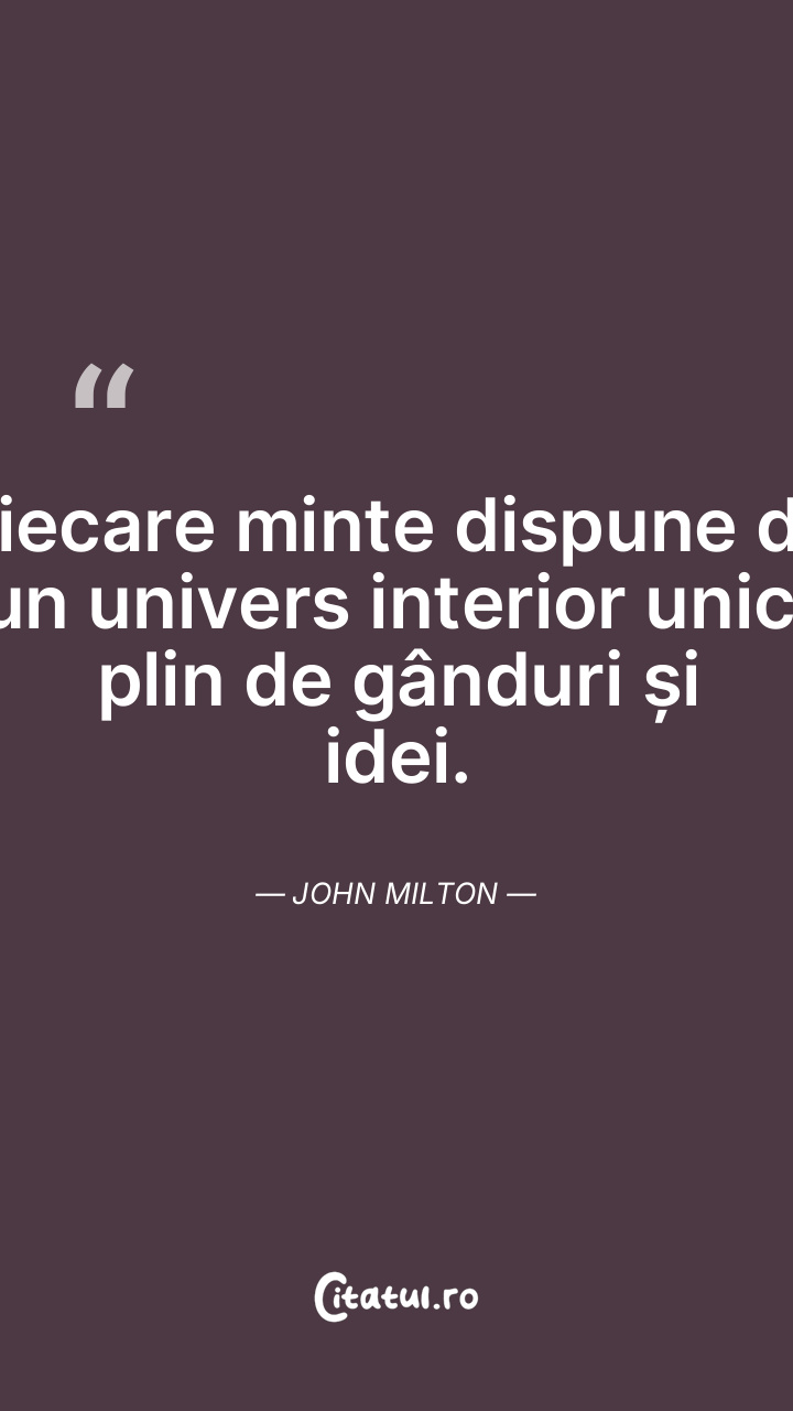 Mintea, în felul său propriu şi prin ea însăşi, poate face din paradis un infern şi din infern un paradis. John Milton