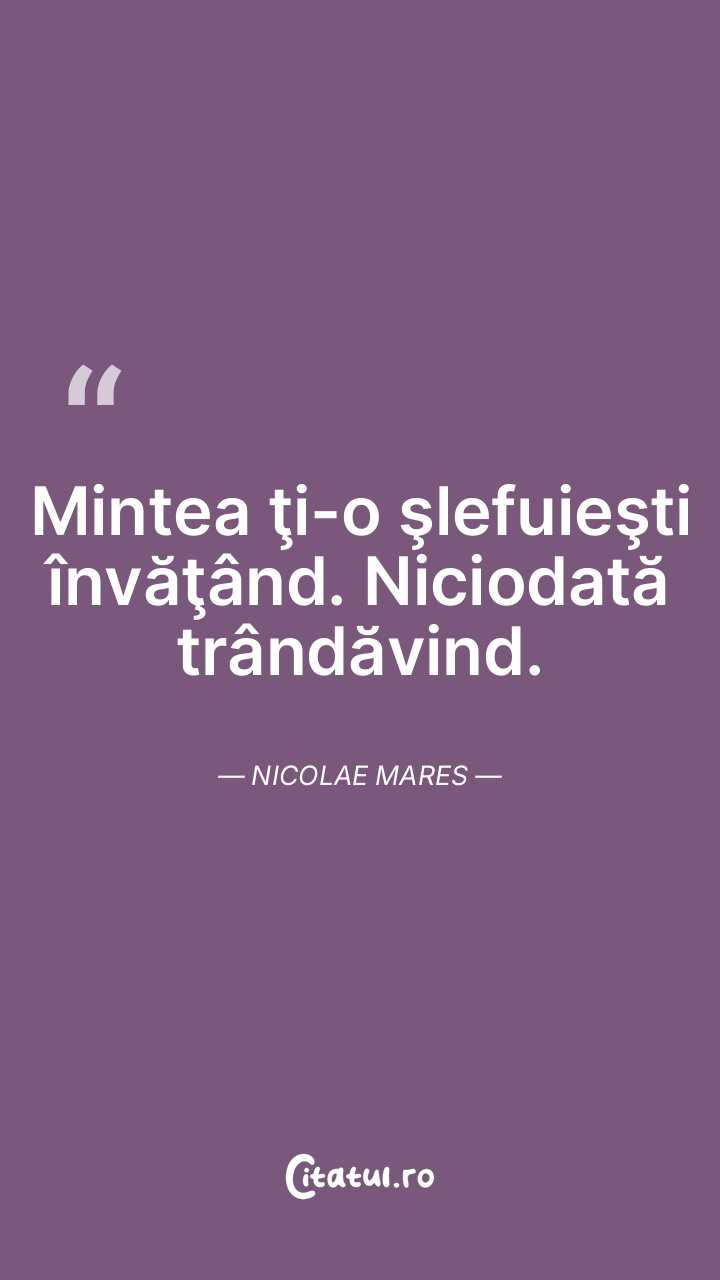 Numai învăţătura destupă în mod sigur mintea. Nicolae Mares