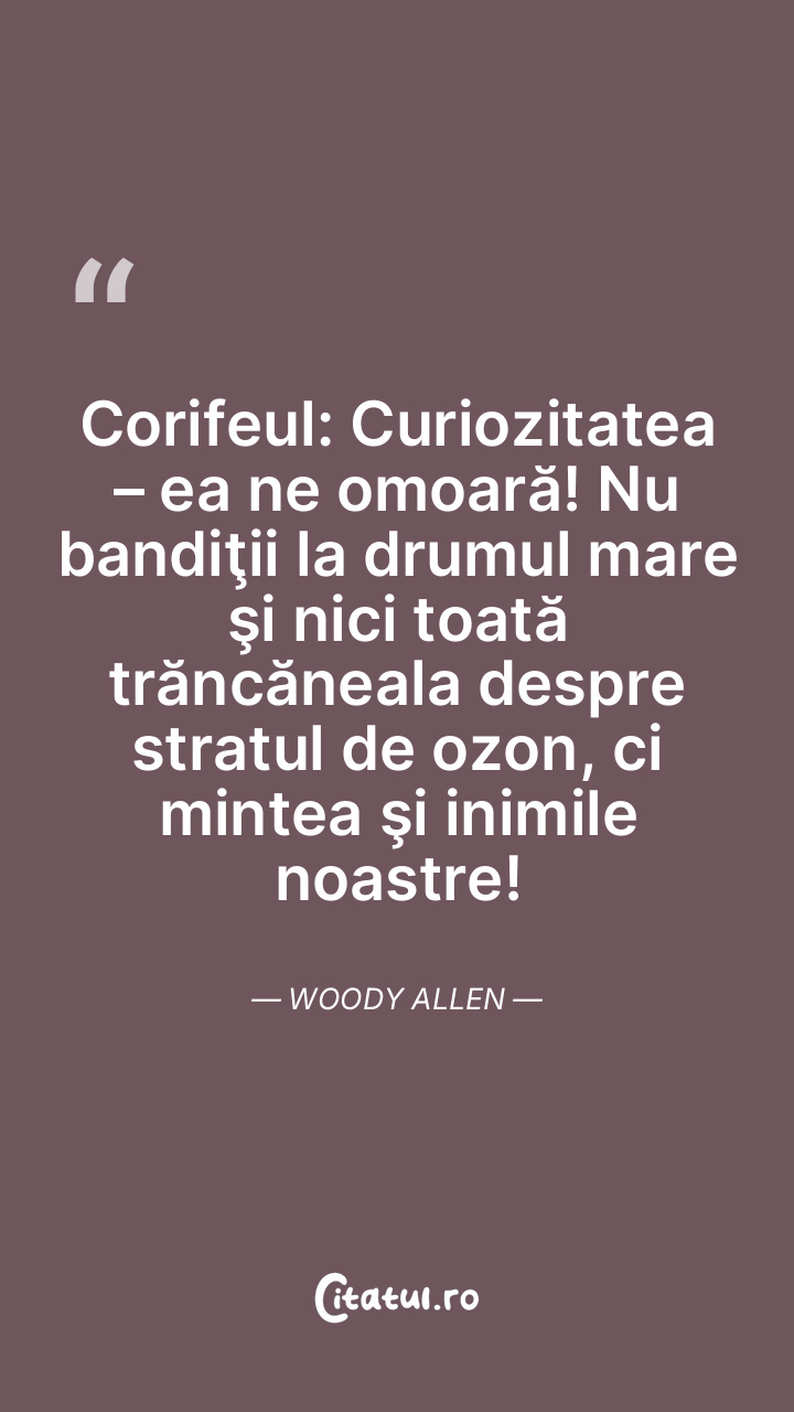 Larry Lipton: Nu reuşesc să-mi scot din minte tema Olandezului zburător! Adu-mi aminte mâine să cumpăr toate înregistrările cu Wagner şi să închiriez o drujbă. Woody Allen