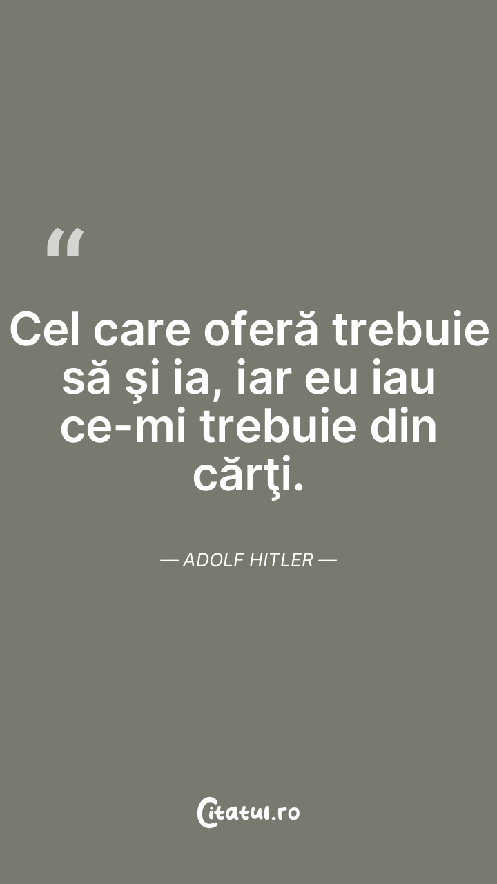 Dacă aş fi ştiut în 1924 că aveam să ajung cancelar al Reichului, nu aş fi scris niciodată cartea. Adolf Hitler