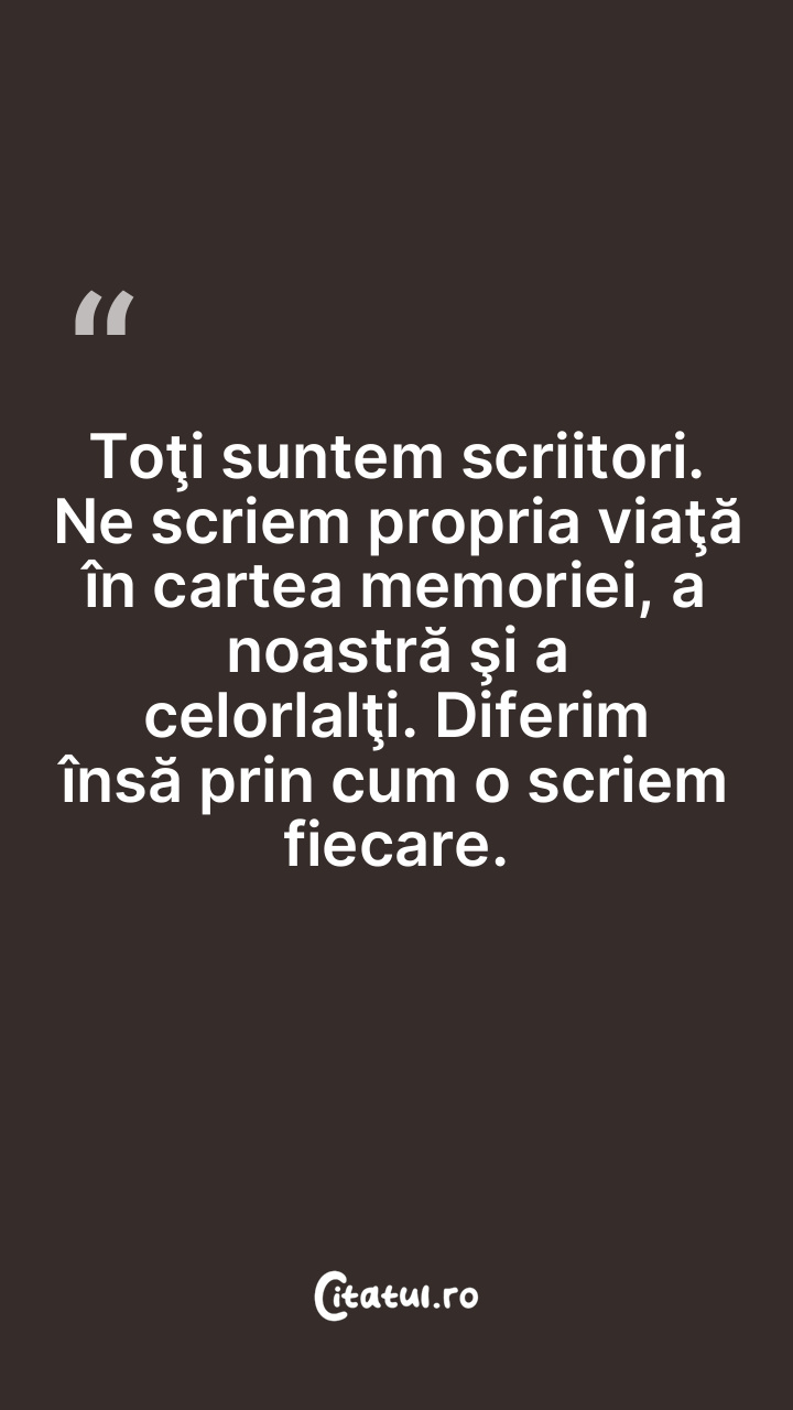 Fiecare dintre noi reprezintă o pagină efemeră în vasta carte a existenței.