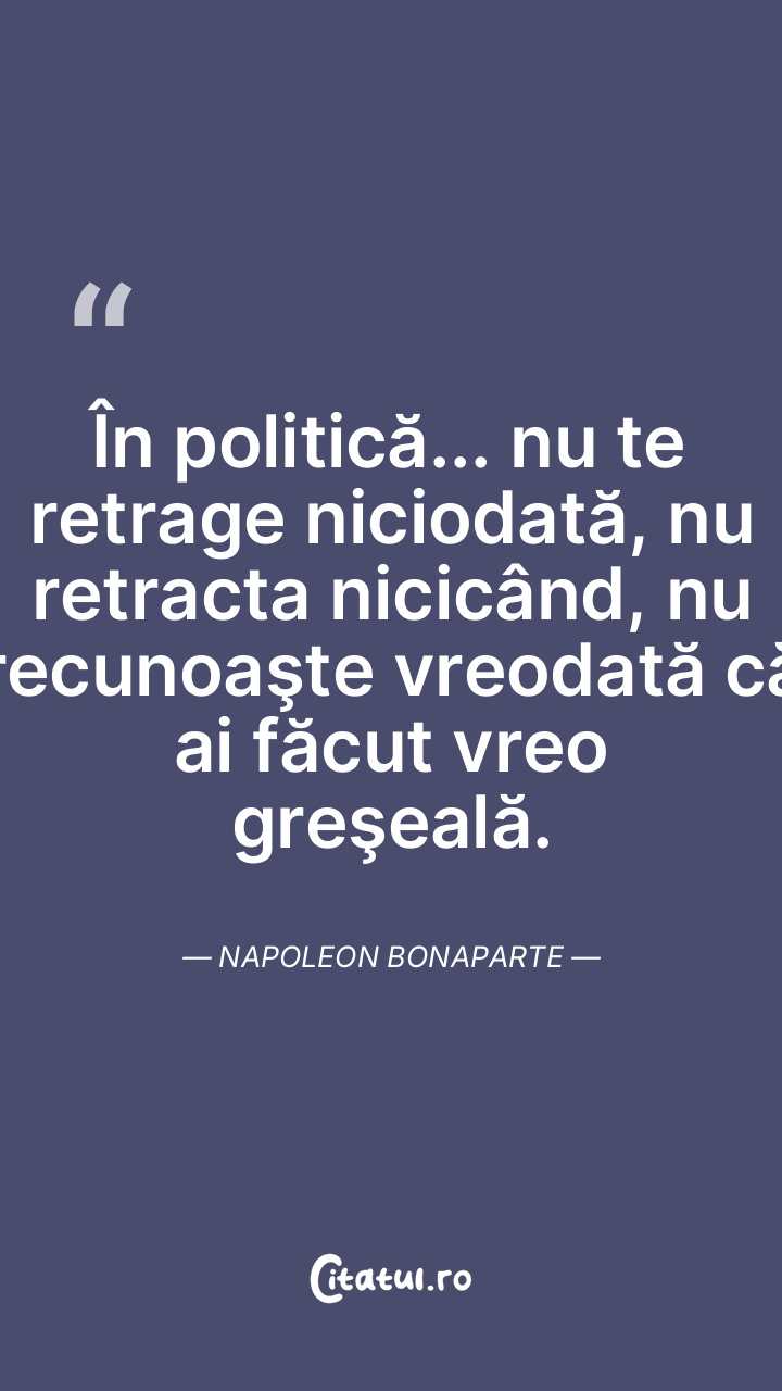 Politica înaltă nu este decât bunul simţ aplicat la lucrurile mari. Napoleon Bonaparte