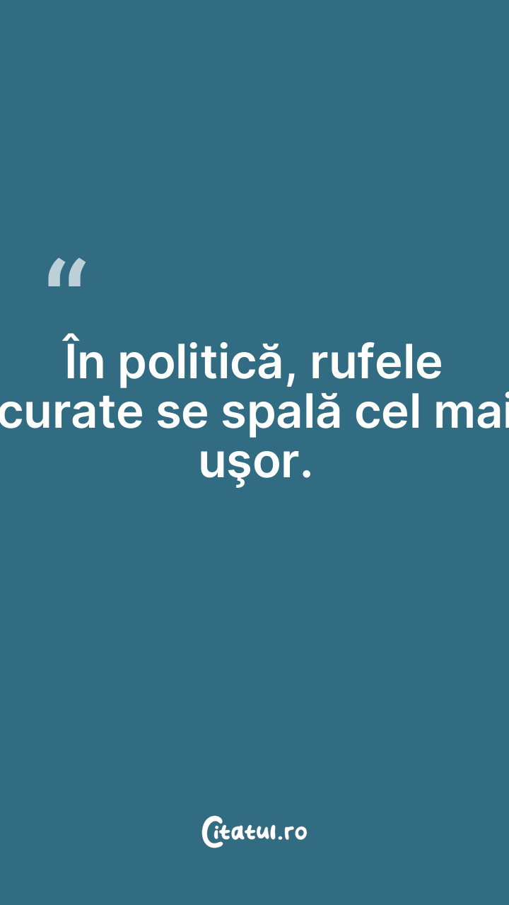 Politica e curvă: ocoleşte bordelurile. ... Categorie: citate viata Dificultate: Foarte ușor de citit! Votează: ★ ★ ★ ★ ★ (0/5 din 0) Distribuiți acest citat? Alegeți platforma preferată: Salvează citatul in telefon/pc Politica e curvă: ocoleşte bordelurile. Copiază Favorite Eroare