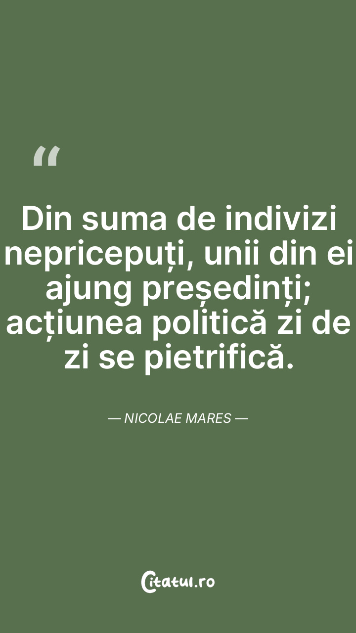 Matematica n-are culoare politică. ... Categorie: citate viata Dificultate: Foarte ușor de citit! Votează: ★ ★ ★ ★ ★ (0/5 din 0) Distribuiți acest citat? Alegeți platforma preferată: Salvează citatul in telefon/pc Matematica n-are culoare politică. Copiază Favorite Eroare
