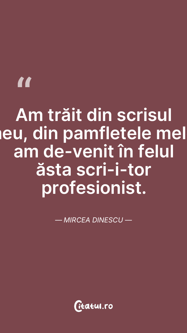 N-am scris niciodată pentru alţii. Am scris pentru mine. Mircea Dinescu