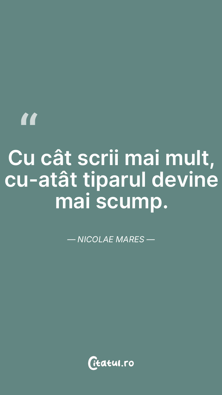 Vai autorului care nu seamănă cu scrisul său, - şi vai poetului care nu seamănă cu versul său. Nichita Stanescu