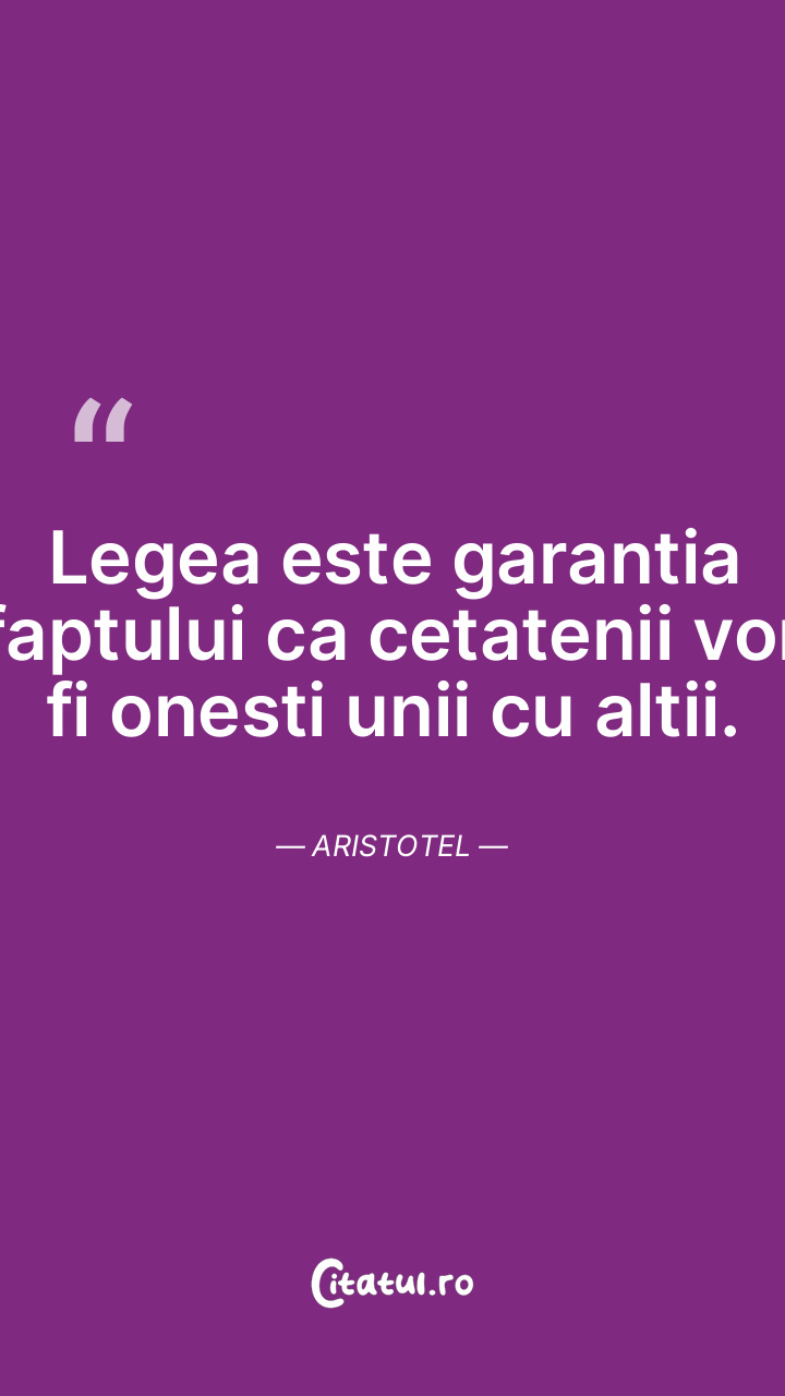 Legea este ordine si o lege buna inseamna o ordine buna. Aristotel