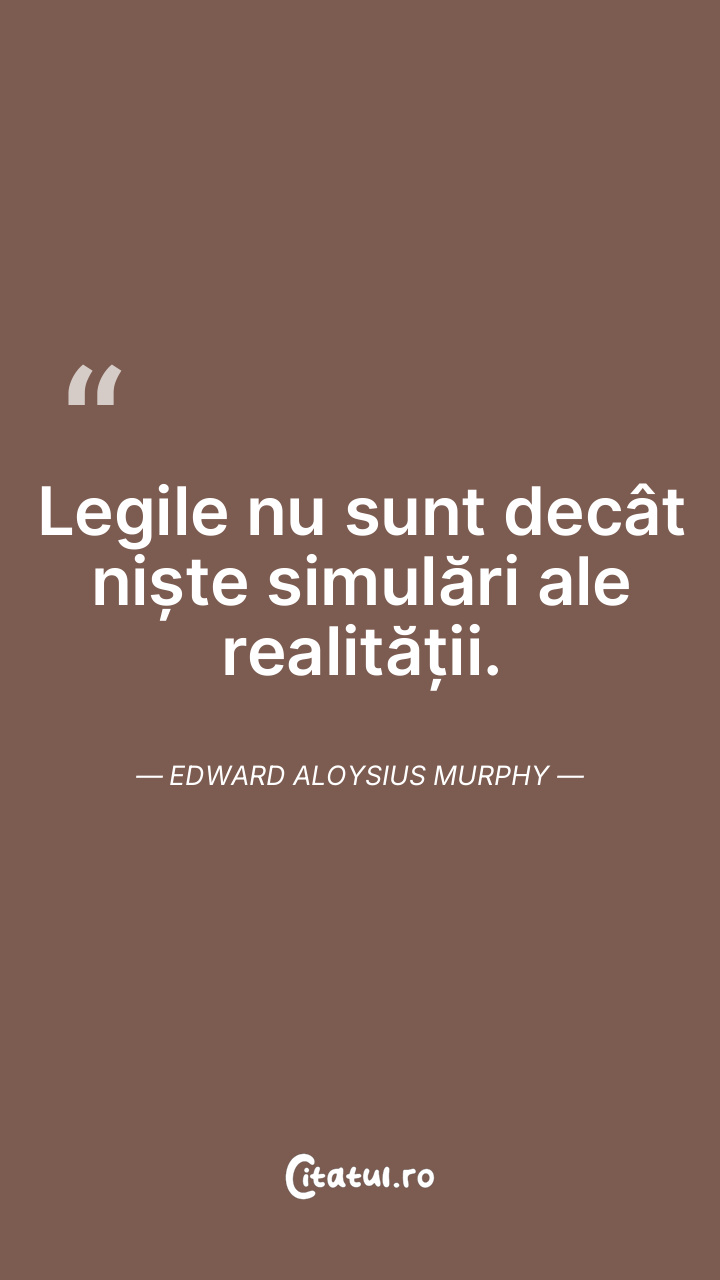 Ori de câte ori ai vrea să te abați cât de puțin, de la lege, un polițist, s-a întâmplat să fie prin apropiere și să te vadă. Edward Aloysius Murphy