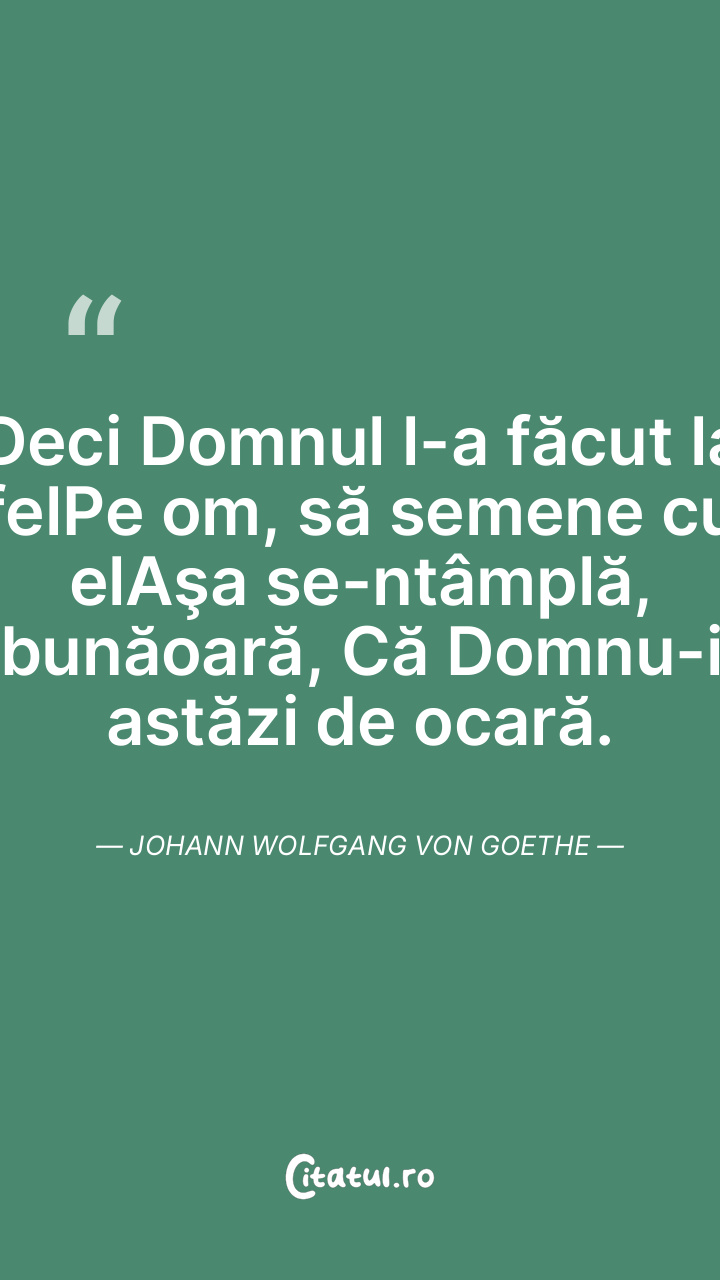 Cu vederea dumnealorPrea departe nu ajung, Văd atât cât nasul lorŞi măcar de-ar fi mai lung. Johann Wolfgang von Goethe
