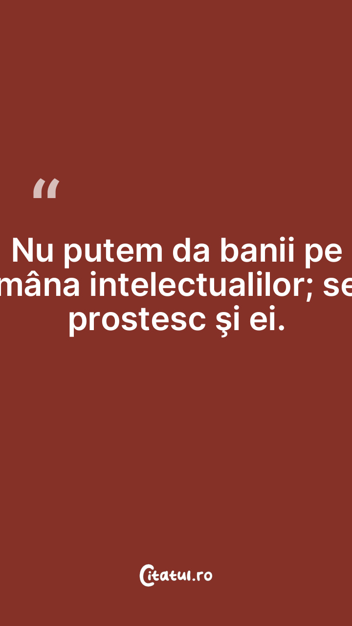 Când nu ai bani, accepţi orice preţ. ... Categorie: citate viata Dificultate: Foarte ușor de citit! Votează: ★ ★ ★ ★ ★ (0/5 din 0) Distribuiți acest citat? Alegeți platforma preferată: Salvează citatul in telefon/pc Când nu ai bani, accepţi orice preţ. Copiază Favorite Eroare