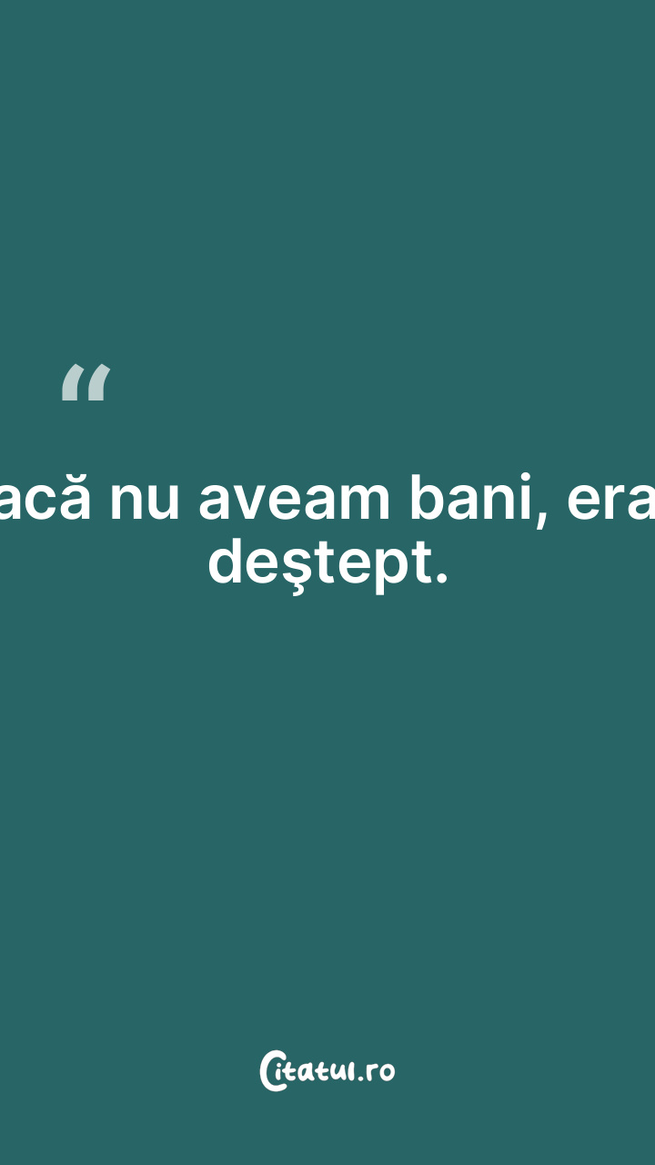 Când nu ai bani, banii nu mai contează; la fel e ş...