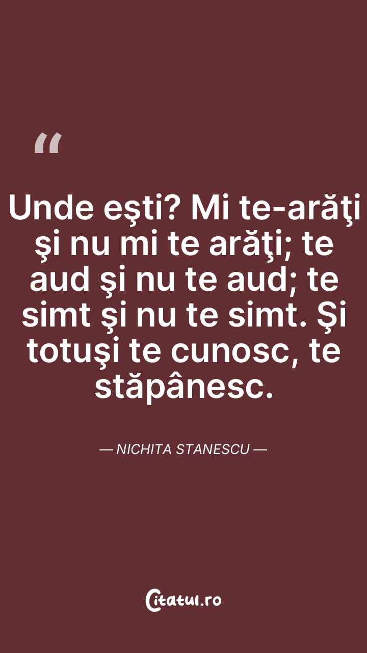 Simt ceva inexprimabil în cuvinte. ... Categorie: citate viata Dificultate: Foarte ușor de citit! Votează: ★ ★ ★ ★ ★ (0/5 din 0) Distribuiți acest citat? Alegeți platforma preferată: Salvează citatul in telefon/pc Simt ceva inexprimabil în cuvinte. Copiază Favorite Eroare