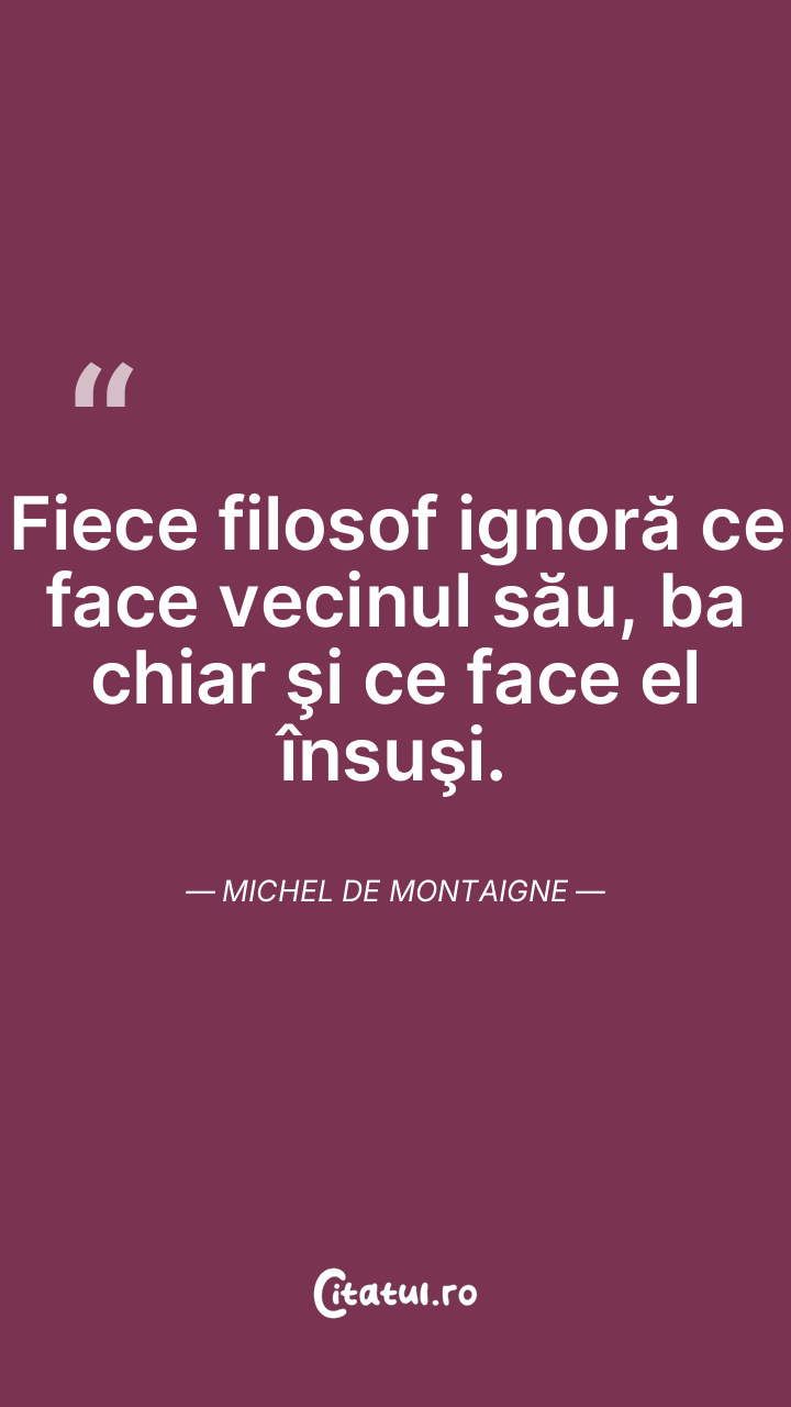 Filosofia ne înfăţişează nu ce e sau ce crede, ci ceea ce făureşte. Michel de Montaigne