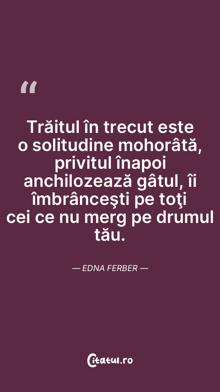 Dacă îi permiţi, trecutul îţi va dirija viitorul. ...