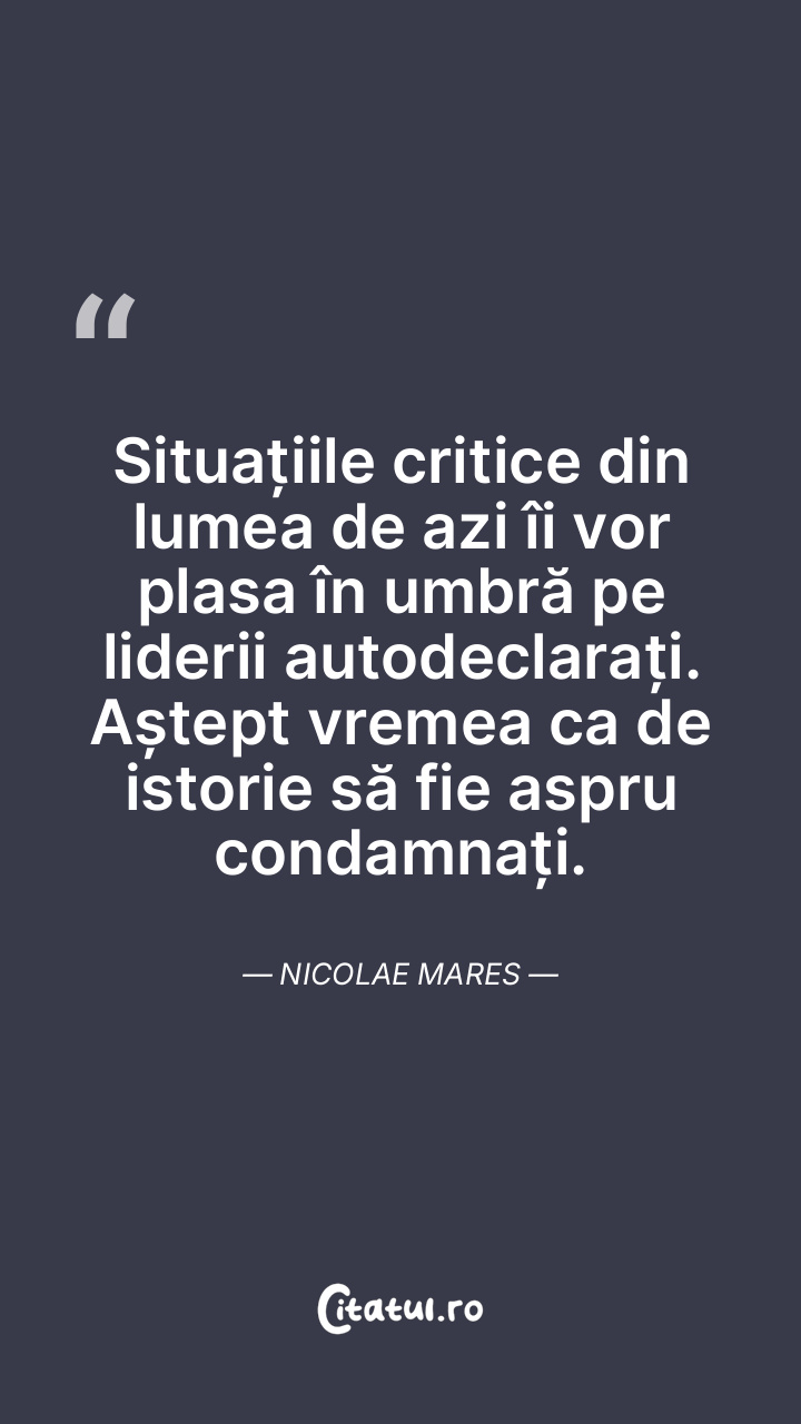 A o duce binișor. Vai, ce mult înseamnă – pe vremea noastră, când traiul e-atât de greu. Nicolae Mares