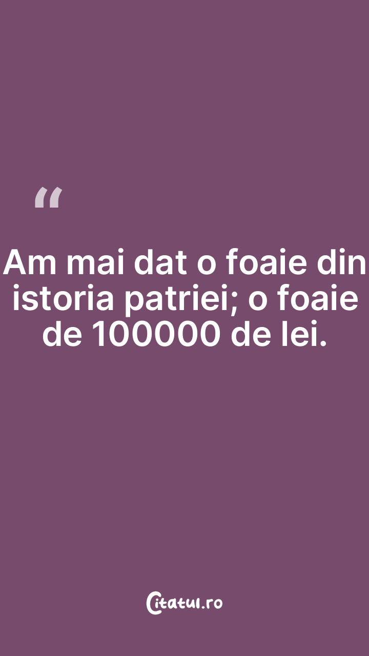 Istoria se repetă cu condiţia să se creeze. ... Categorie: citate viata Dificultate: Ușor de citit și înțeles Votează: ★ ★ ★ ★ ★ (0/5 din 0) Distribuiți acest citat? Alegeți platforma preferată: Salvează citatul in telefon/pc Istoria se repetă cu condiţia să se creeze. Copiază Favorite Eroare