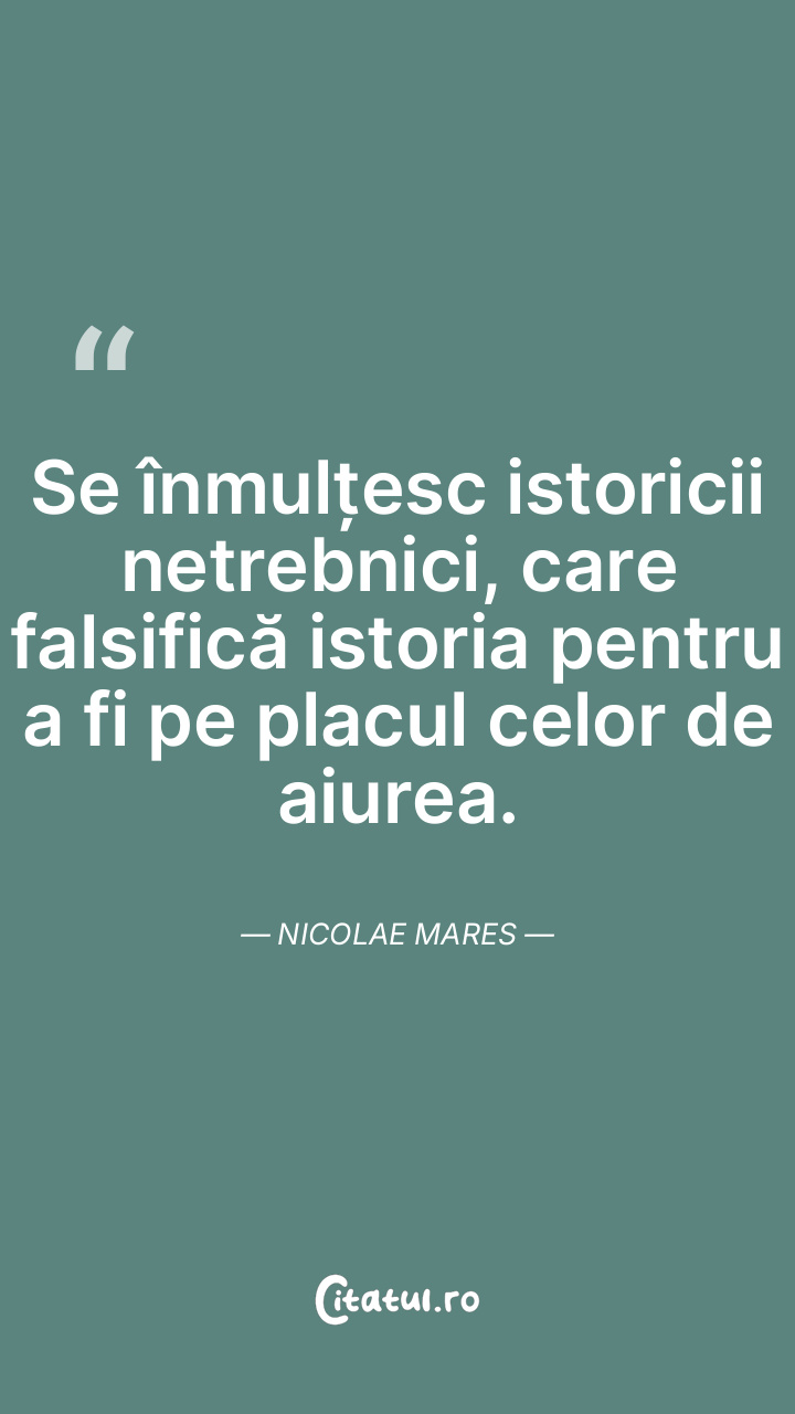 Istoria a aflat că cel care a aruncat primul cu piatra a început după aceea să schimbe și lumea. Nicolae Mares