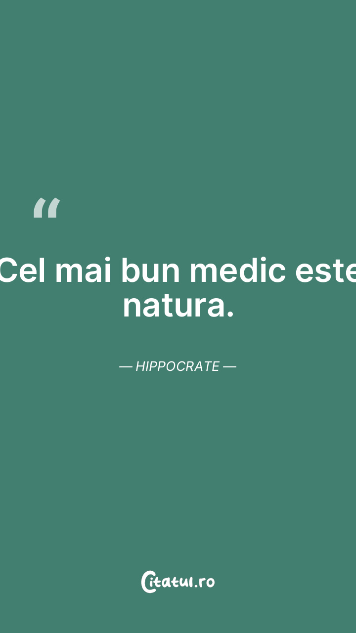 Medicul îngrijeşte, natura vindecă. Hippocrate ...