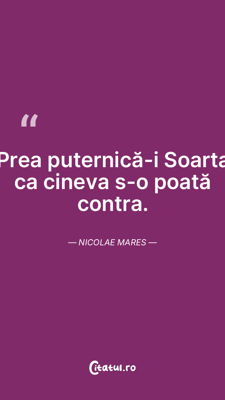 Soarta: - ajungi să fii numai ceea ce ai gândit. Nicolae Mares