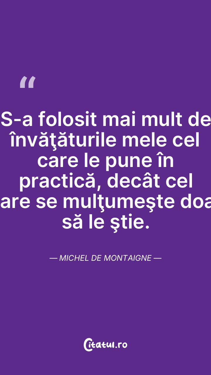 Prosperitatea îmi slujeşte drept şcoală şi învăţătură, după cum altora le slujesc necazul şi nuiaua. Michel de Montaigne