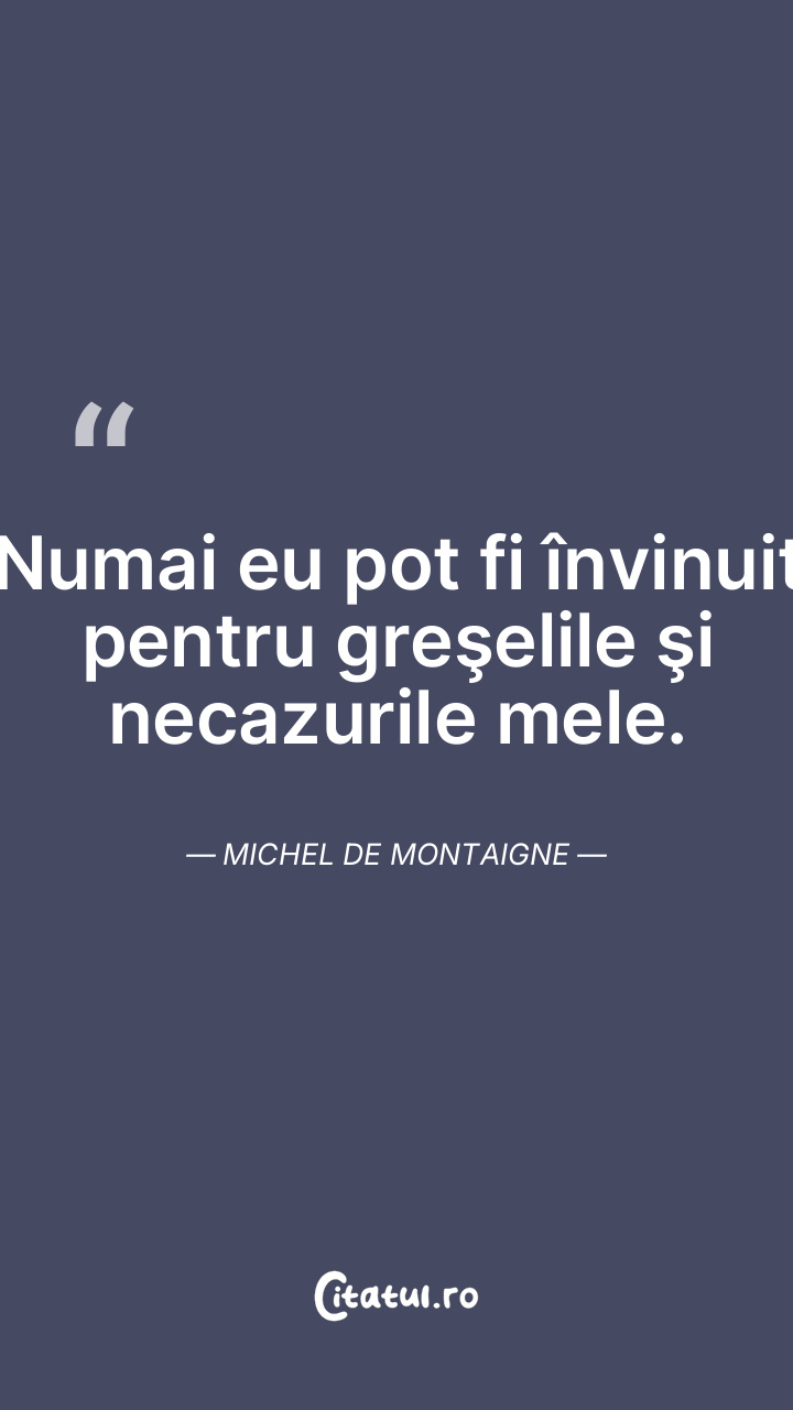 Îmi judec mai la obiect şi mai aspru greşelile proprii decât pe ale oricui altcuiva. Michel de Montaigne