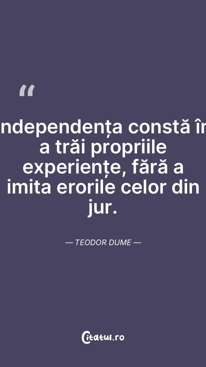 Greșim ori de câte ori ne abatem de la caracter. Teodor Dume